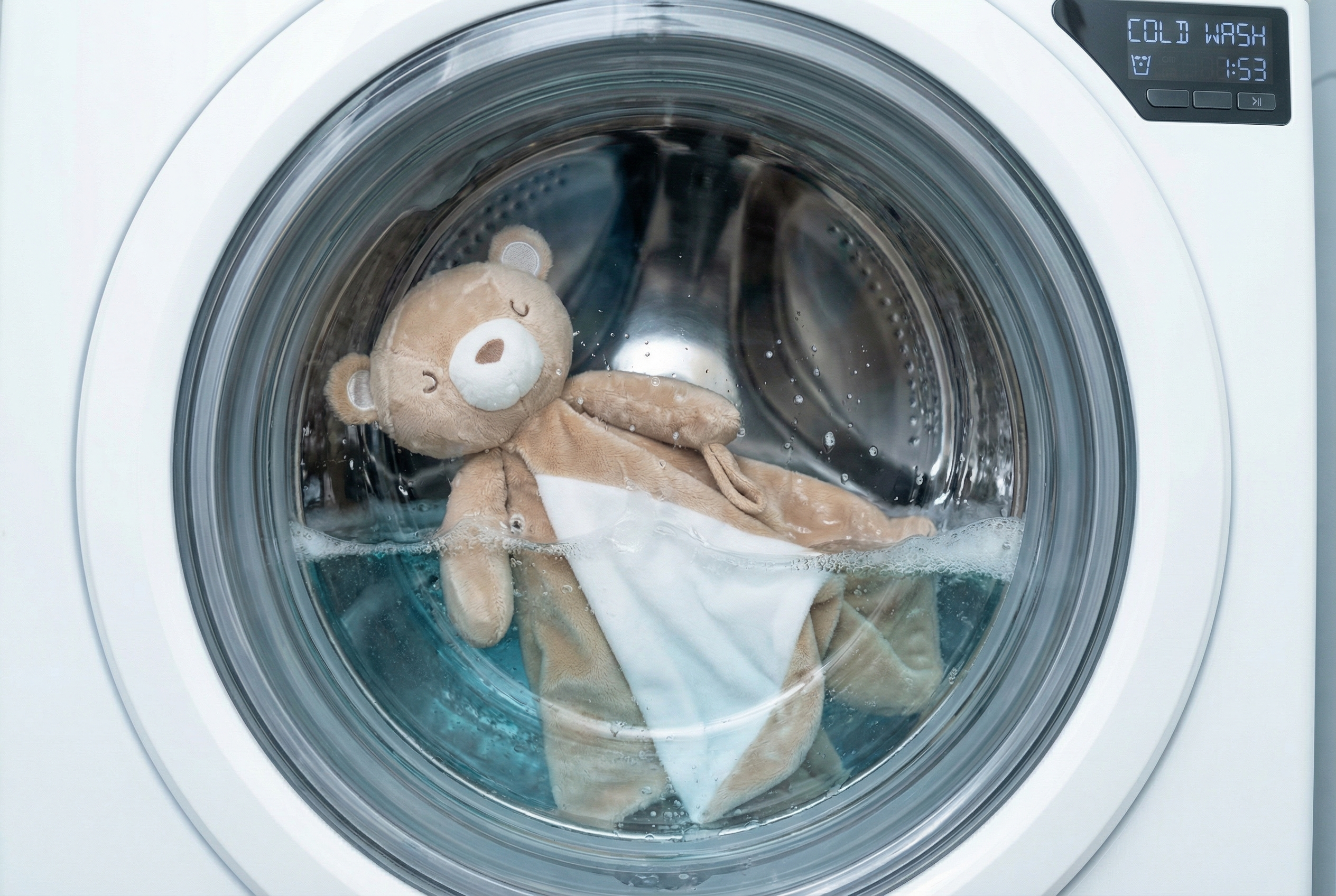 La peluche est lavable en machine à froid ou à température tiède.